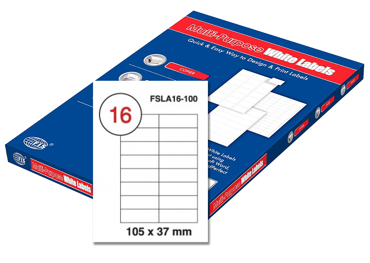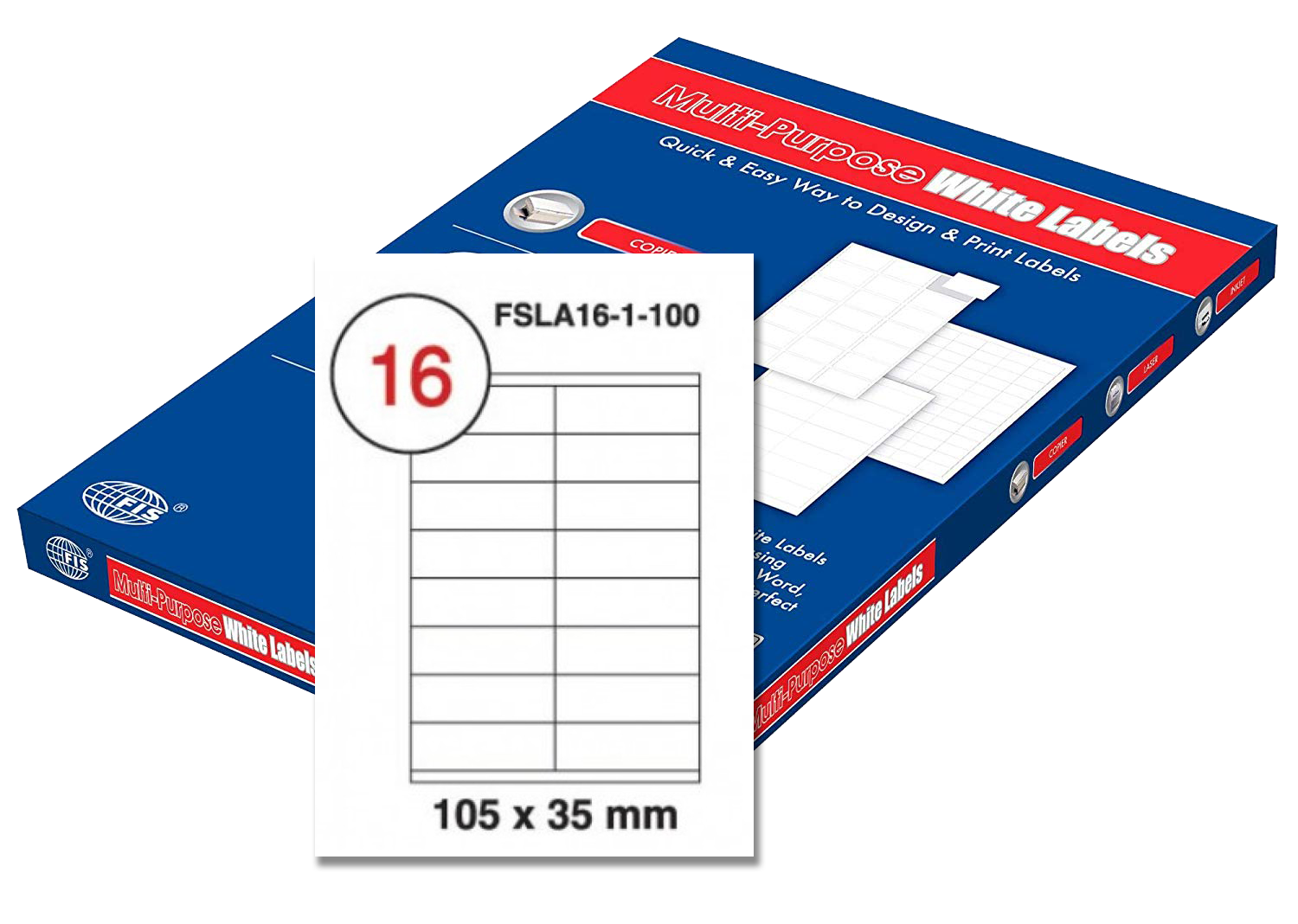 | FSLA16-1-100 | FIS – Multi Purpose Label | FIS | White | 105 x 35 mm (16 Labels) |
