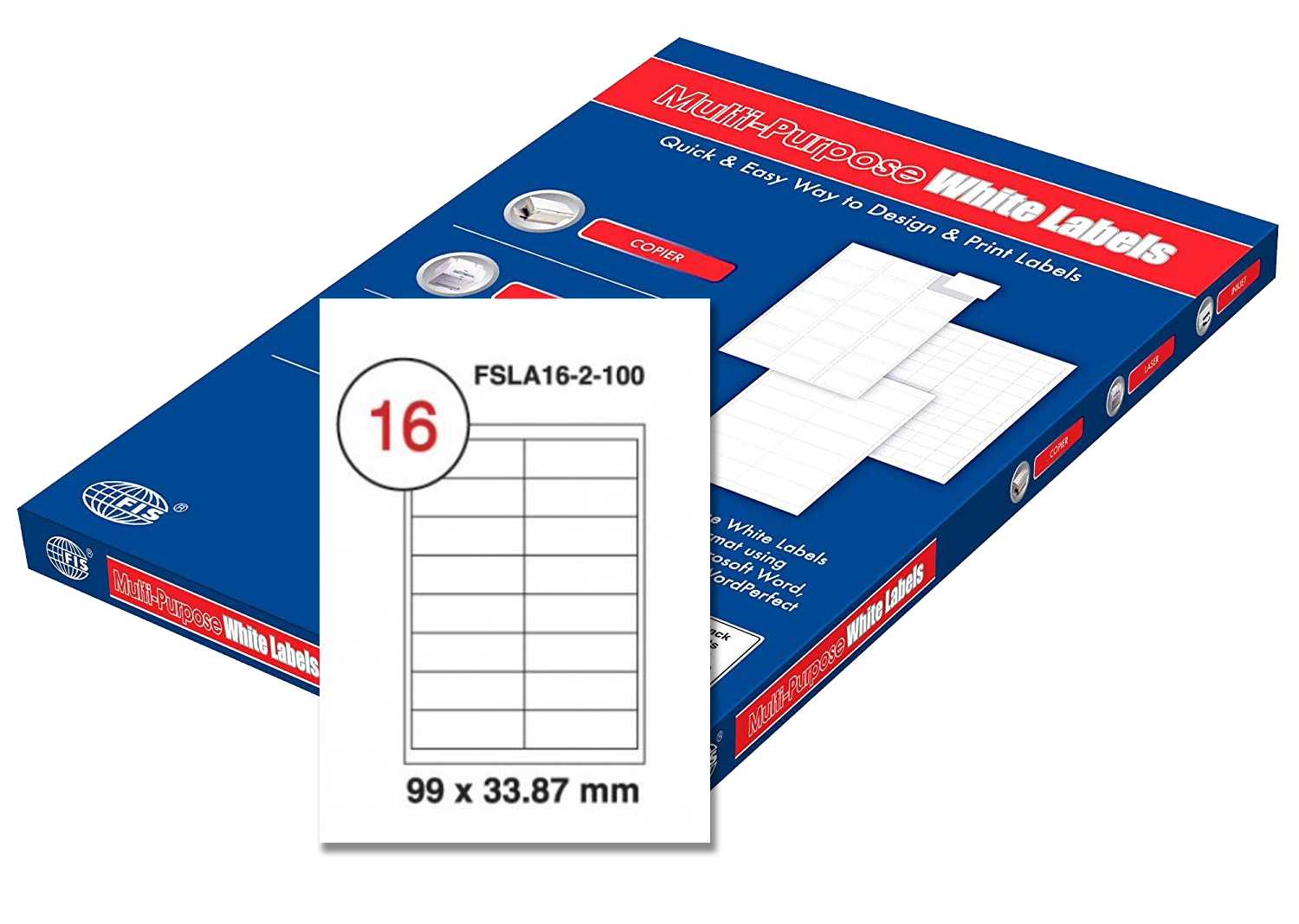 | FSLA16-2-100 | FIS – Multi Purpose Label | FIS | White | 99 x 33.87 mm (16 Labels) |