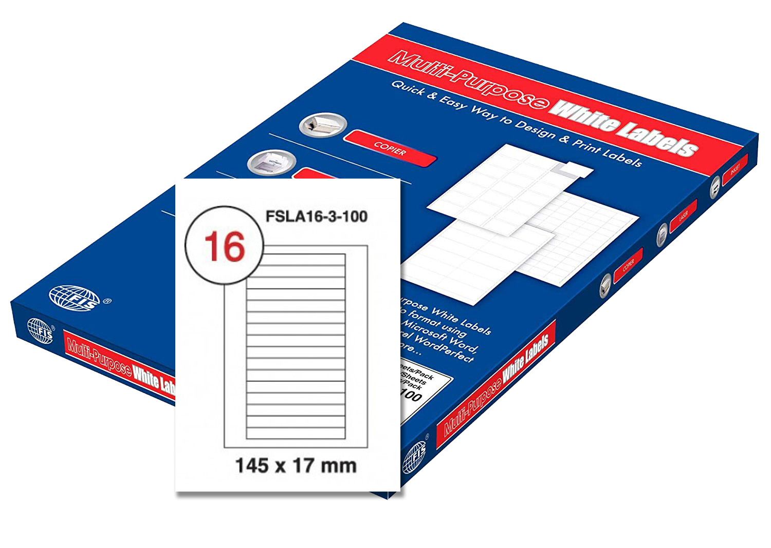 | FSLA16-3-100 | FIS – Multi Purpose Label | FIS | White | 145 x 17 mm (16 Labels) |