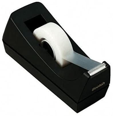 Scotch® Black Desktop Dispenser, classic design and reliable to keep your tape ready to use. Weighted dispenser that allows for one-handed dispensing of a wide variety of tapes. For easy, convenient one-handed dispensing. Made of 100% recycled plastic, friendly with the environment. Dispenses standard tapes on a 1 inch core up to 3/4 inch wide by 1500 inch long. Different designs adapting to different styles. Keep yours every time to do your work easy and refill them with Scotch® tapes.